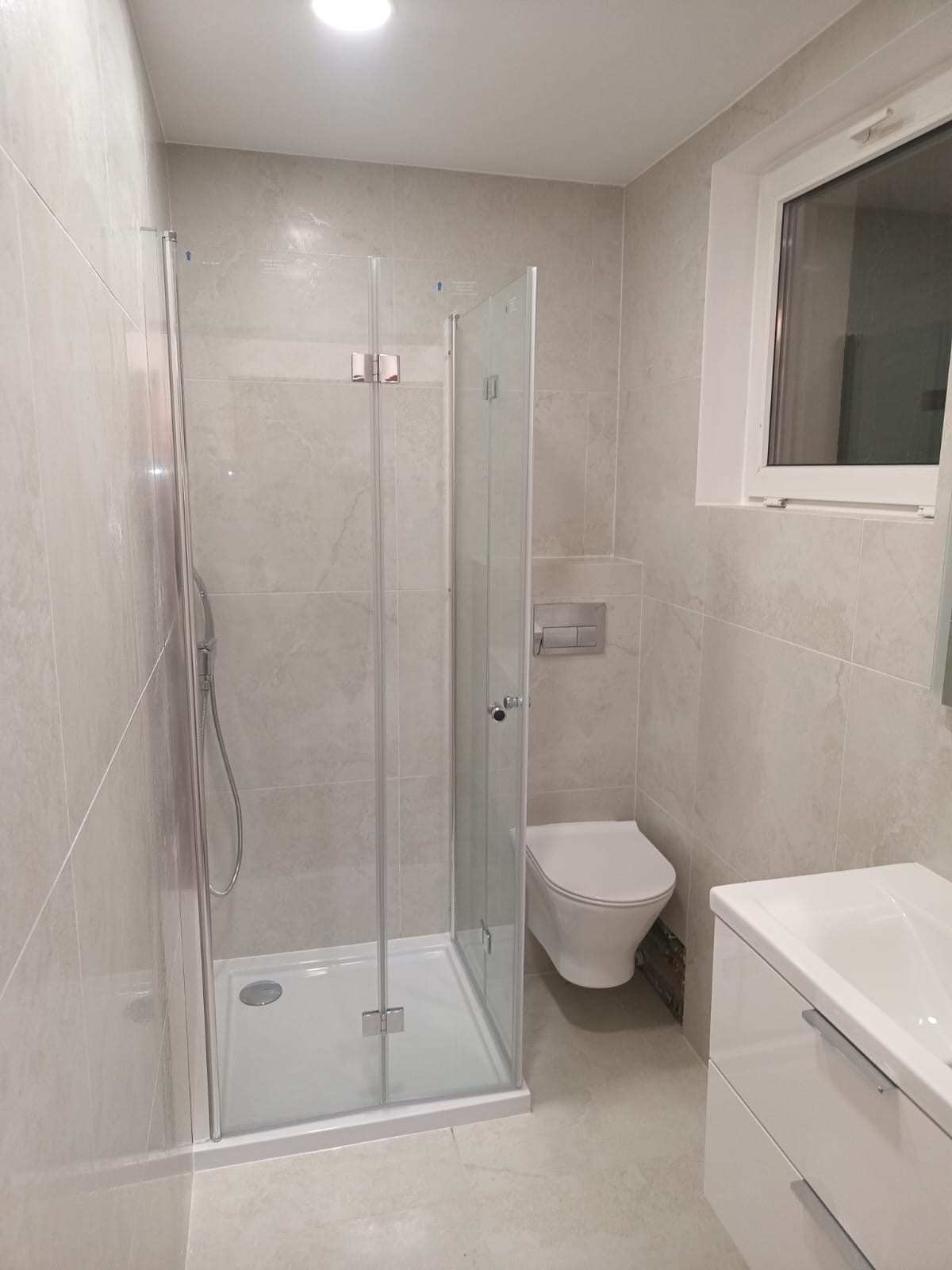 Realizacja nowoczesnej łazienki obejmowała kompleksową metamorfozę wnętrza – od stanu surowego po w pełni funkcjonalną i estetyczną przestrzeń. Jasna kolorystyka płytek, minimalistyczna zabudowa oraz starannie dobrane oświetlenie podkreślają nowoczesny charakter wnętrza, zapewniając jednocześnie wrażenie czystości, harmonii i komfortu użytkowania.